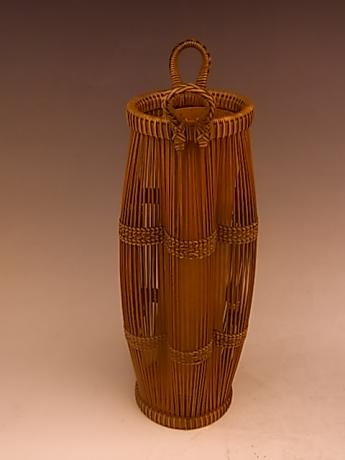 Japanese 20th century bamboo flower basket by master artist, KOSUGE KOUGETSU. KOSUGE was born in 1932 and learned the craft of bamboo flower basket making from his father. His first work of art was selected for exhibition in 1951. He subsequently exhibited at the 10th NITTEN and the Japanese Arts and Crafts Exhibition held once a year. In 2000 he had his first solo exhibition. The basket measures 12 1/8" tall by 4 1/4" in diameter. (nonesu) 03232012 |