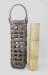 Japanese early 20th century bamboo flower basket by bamboo artist named ISSAI. The basket is signed ISSAI SAKU on the bottom. The basket measures 23" tall and 6" in diameter. |