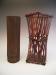 Early 20th century Japanese bamboo flower basket. Basket is done in an open weave in a twisted rectangular form. Signed by artist, KYOKU SHU. 10.5" tall by 4.5" wide. 03202012 |
