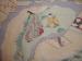 Japanese Meiji Period FUKUSA. Done in the YUZEN, paste resist dyeing and handpainting technqiues. Additional detailing is done with embroidery, such as the tastles of the noblewoman's fan and the cord on the handscroll. Design is of fan design, FUKUSA design and painters sample book and handscroll. 18 3/4" by 19". |
