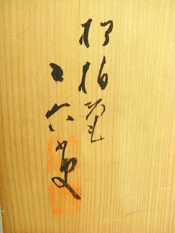 Japanese Meiji Period earthenware flower vase done in the shape of bamboo with a small frog hidden inside one of the layers of the open bamboo. Done very realistically by master artist SASAKI NIROKU. Stamped on bottom. Comes with TOMOBAKO, or original artist signed wooden storage box. The vase measures 9" tall and 4" in diameter. (nenesu) |