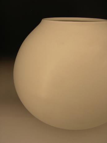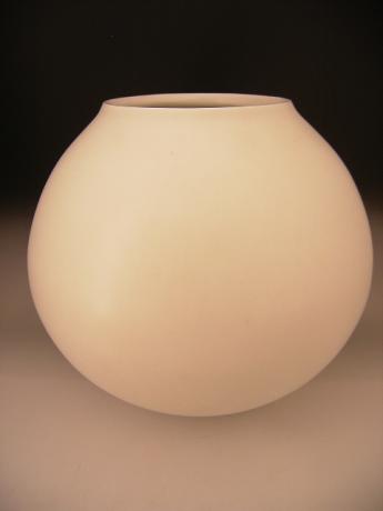 Japanese 20th century large HAKUJI white porcelain vase. Made by master porcelain artist, FUJIWARA TSUNENORI. FUJIWARA TSUNENORI has been active with the Tokyo National Contemporary Museum. Signed on bottom. No box. The vase measures 14 1/4" tall by 16" in diameter. (nodene) |