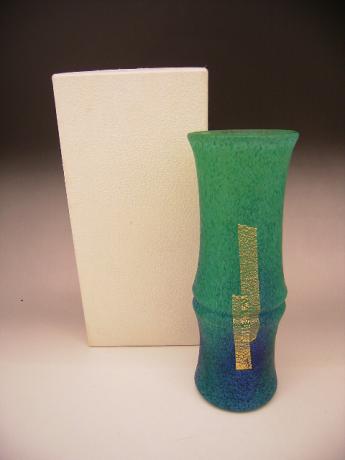 Japanese 20th century art glass vase by master glass artist, HISATOSHI IWATA. The beautiful handblown vase is done in the shape of bamboo. Hisatoshi Iwata was born in Tokyo in 1925 and he died in 1994. He graduated from the prestigious Tokyo School of Fine Arts in 1950. He has participated in all the major exhibitions in Japan. His works of art on part of the collections at the Corning Glass Museum and the Metropolitan. The vase measures 9 1/2" tall by 3 3/8" in diameter. Comes with original artist signed storage box. (dene) |