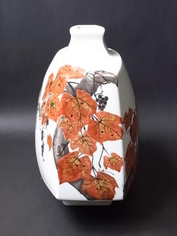 Japanese late 20th - early 21st century porcelain vase by ceramic artist SUZUKI SOUJI (1939-). SUZUKI SOUJI was born in Kyoto. His father was also a ceramic artist and through his father he got to know the famous artist TOMIMOTO KENKICHI very well. He also studied under such great ceramic artists as KONDO YUZO and FUJIMOTO YOSHIMICHI. The vase comes with TOMOBAKO, or original artist signed wooden storage box. The vase measures 15" tall by 11 3/8" wide by 6" deep. (denesu) |