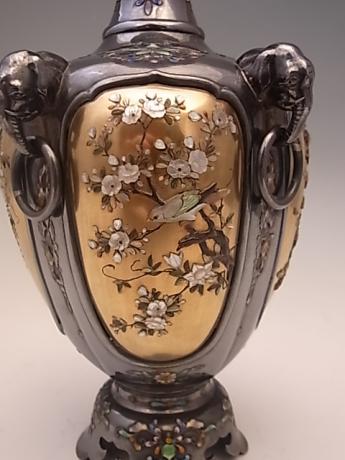 JAPANESE MEIJI PERIOD PURE SILVER AND LACQUER SHIBAYAMA VASE SOLD |