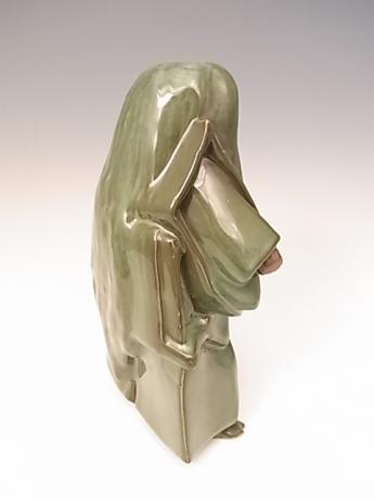 Japanese 20th century porcelain figure name ISHIBASHI. This character is from the Noh Play Sakkyo. The figure measures 7 3/4" tall, 4 1/2" wide and 3" deep. Comes with TOMOBAKO, or original artist signed wooden storage box. |