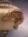 Japanese mid 19th Century SATSUMA incense burner with silver HOYA cover made in the 1930's. SATSUMA incense burner has design of chrysanthemums and HAGI with butterfly. Signed by SATSUMA artist, TOKOUZAN. The silver HOYA cover is made by well known metal artist, OHSUGA TAKASHI. HOYA is signed on one of the leaves. Comes with box. 7" height, 9" width by 6 1/2" depth. |
