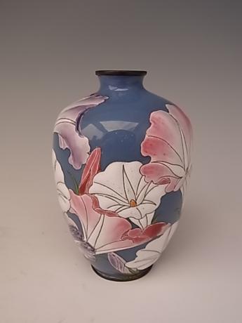 JAPANESE EARLY 20TH CENTURY CLOISONNE VASE WITH MORIAGE MORNING GLORY DESIGN SOLD |